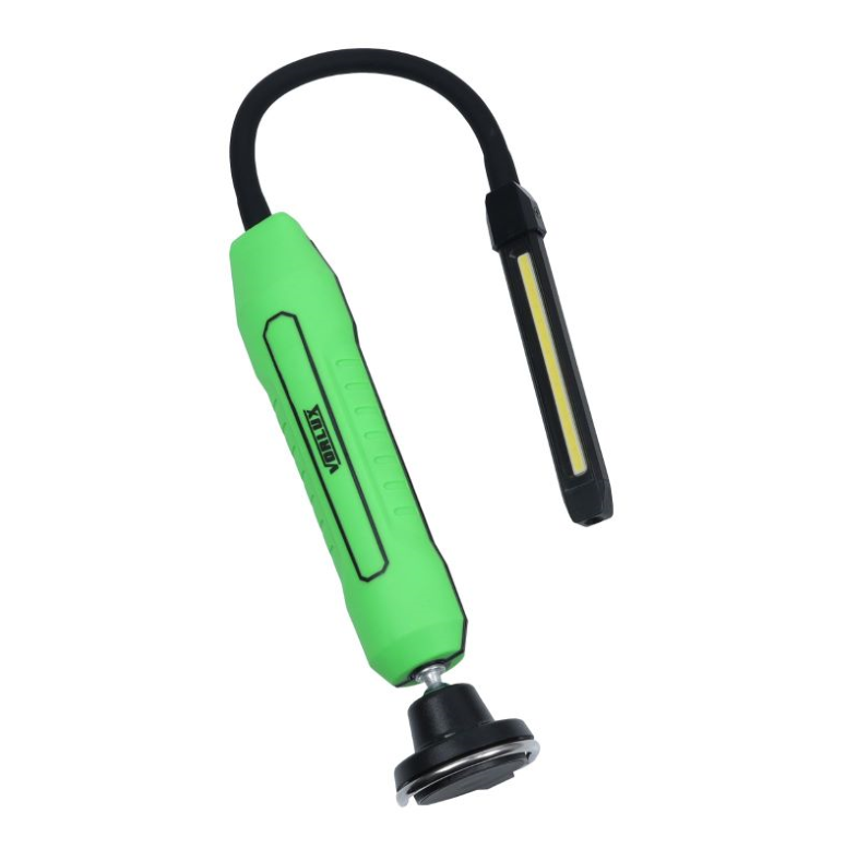 Slim design allows inspection of narrow and difficult to access areas. The ball jointed base offers a variety of fixing positions to get the perfect angle of illumination. A flexible neck adds further options for positioning and access. The brightness level can be easily adjusted simply by turning the dial. The main light offers up to 600 lumen and the torch feature 170.